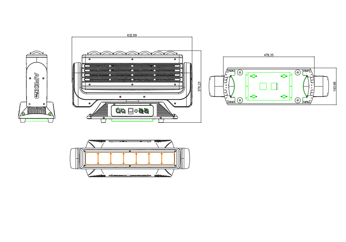 Effects can be coupled with beam, wash or matrix applications